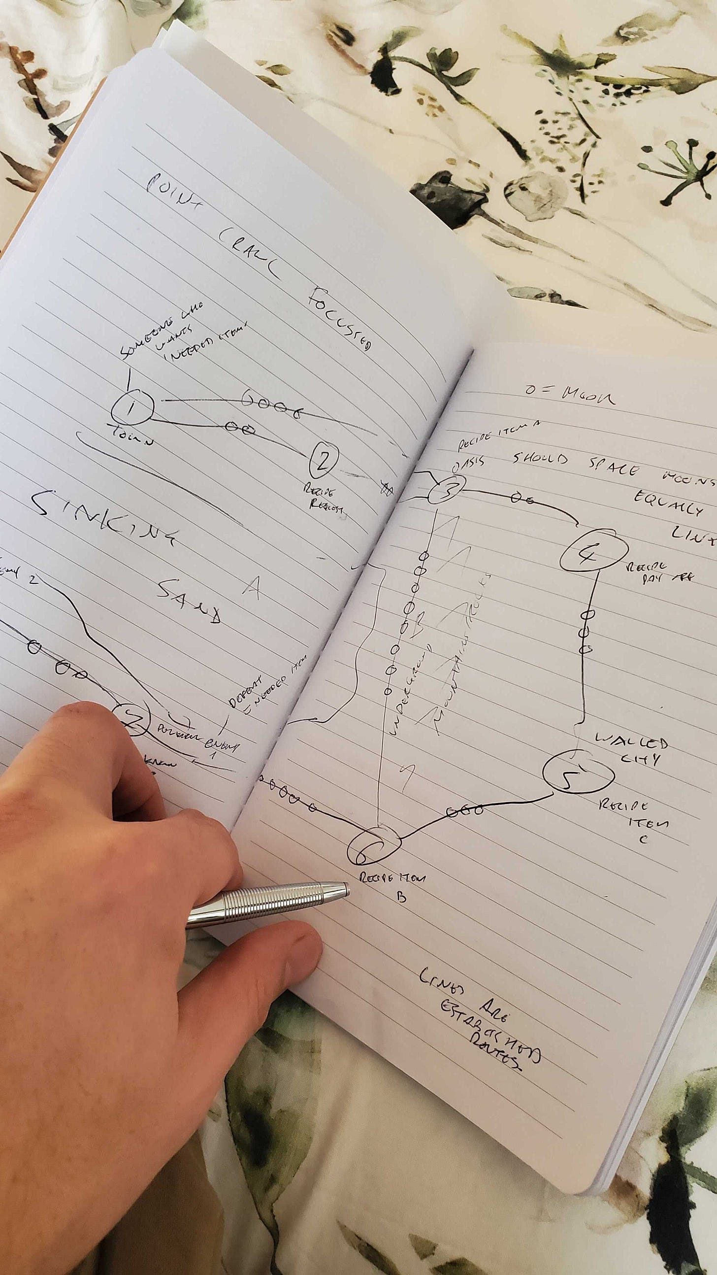 Here’s a draft point crawl. I really want point crawls to feel like areas in a video game where various points have items and story points needed to fulfill a challenge at other points.