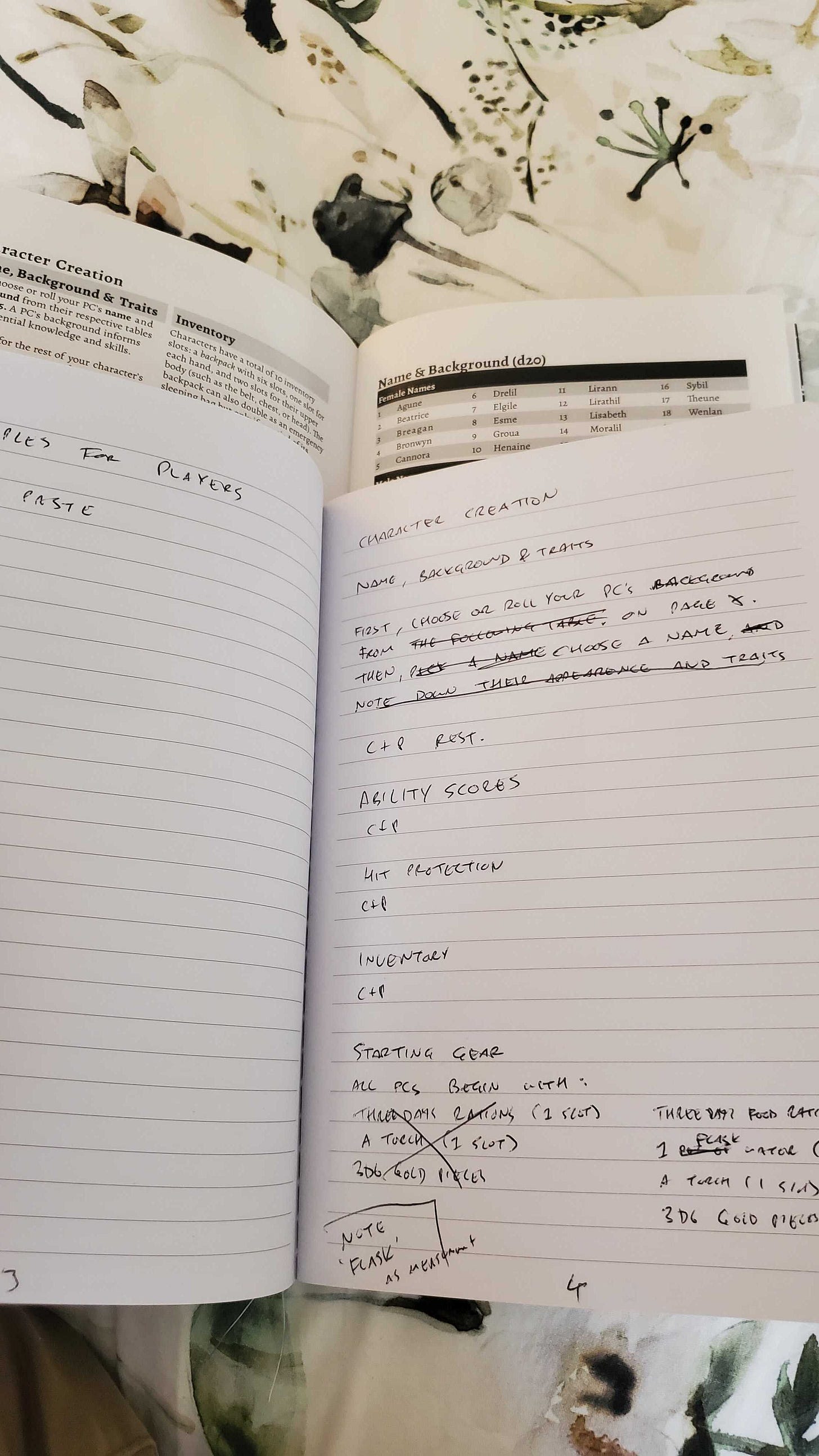 This is my Cairn hack. It’s Desert Cairn, but with a focus on survival and travel. I want to make a lightweight game that uses scarcity to drive players forwards and makes it necessary to take risks.