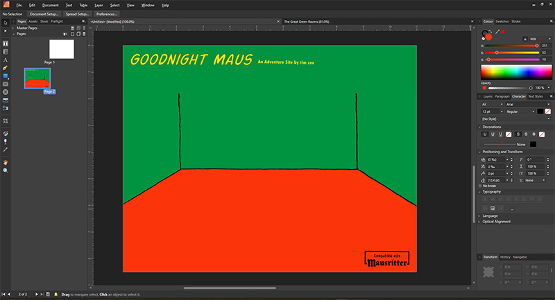 I also started a new project in Affinity Publisher for Goodnight Maus, which — for me — is another mental milestone in getting a project finished.