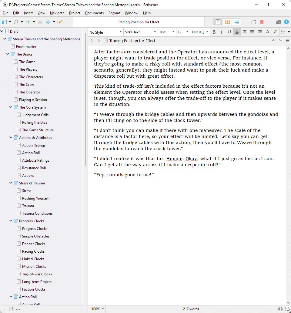 Still very busy here. That means I only have time to do micro progress on my TTRPG projects. For Steam Thieves that means copying and pasting a short section from the FitD SRD and then tweaking it to fit my game (mostly changing the lingo and flavour, for now).