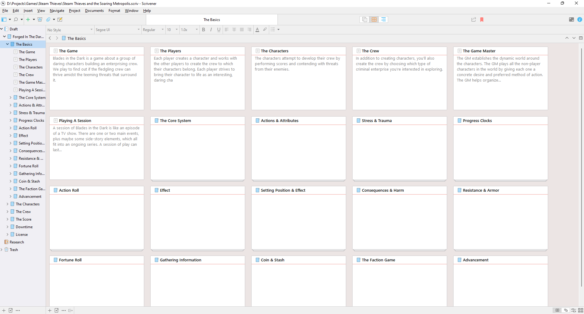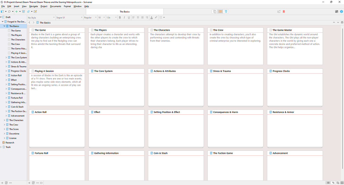 A while ago I made a scrivener file to serve as a template for making Forged in the Dark games (if anyone wants that file, just let me know).