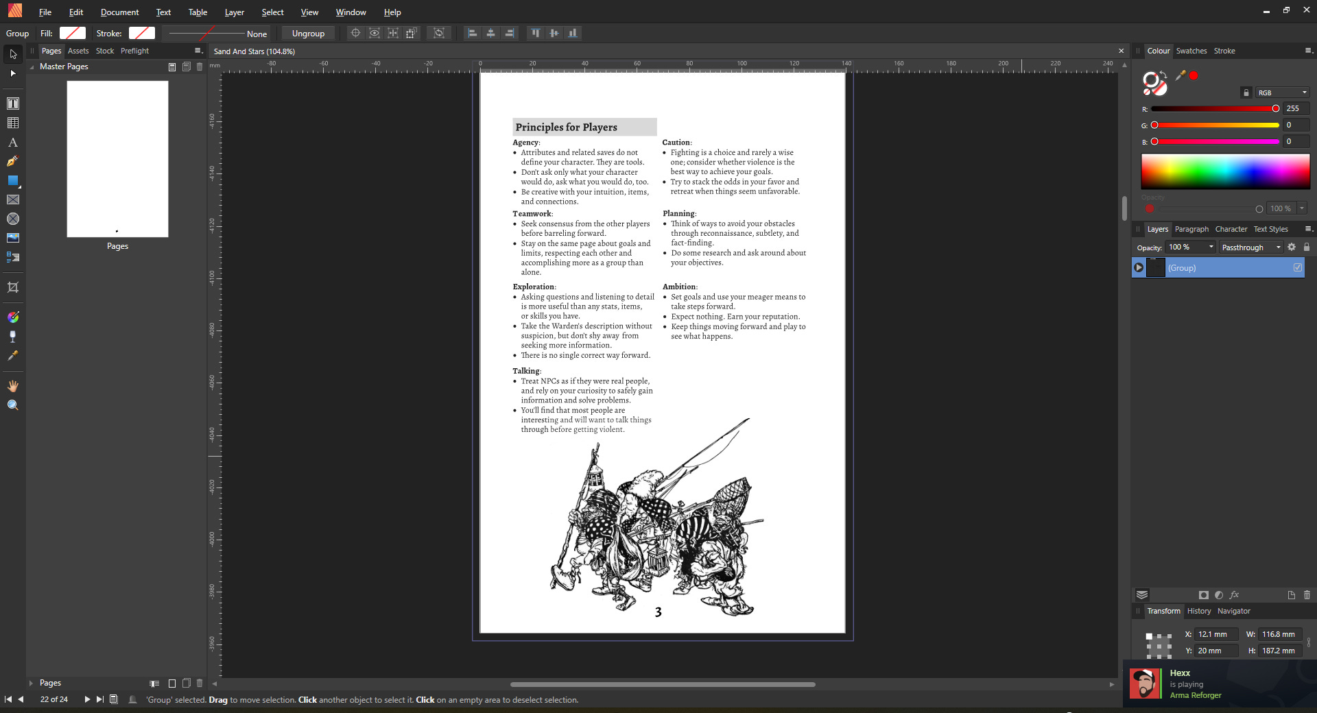 The publisher project was especially easy thanks to Yochai Gal’s wonderful decision to post the Cairn publisher project file online and provide free access to all. I’m not going to clone Cairn, but having the size and margins already plotted out is going to save me a lot of work.